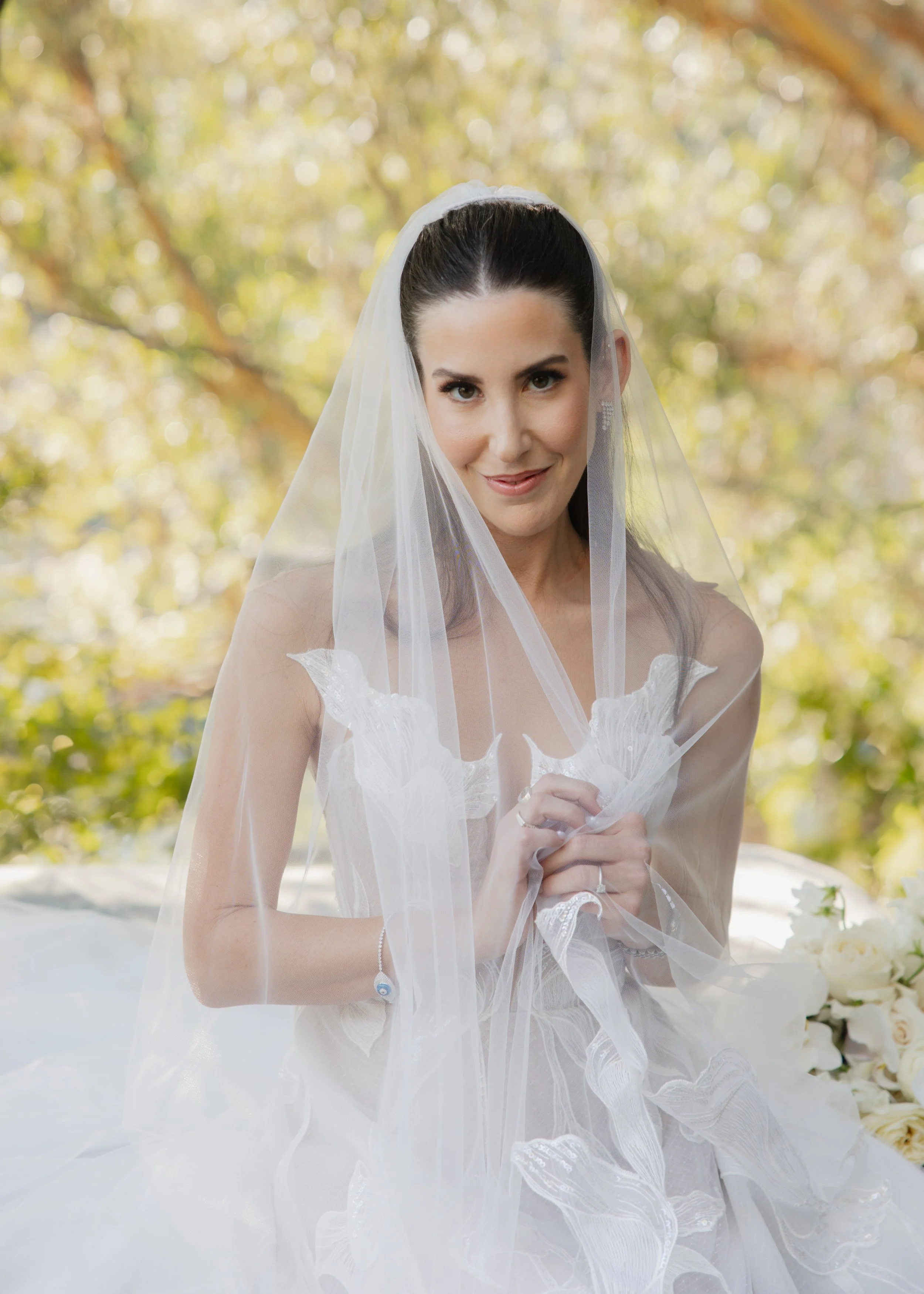 She was completely at ease in front of the camera, which made my job pure joy. There's a photograph I took of her mid-laugh, head tilted back, bouquet loose in her hand, the Los Angeles skyline soft behind her — and it is simply one of the most beautiful frames I have ever made.